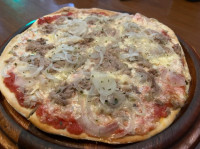 Muzzarela, atum sólido, cebola e azeitonas pretas