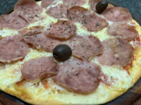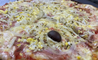 Muzzarela, presunto, ovos cozidos, cebola e azeitonas pretas