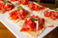 Massa branca, coberta com tomate picado, cebola, parmesão, manjericão e pimenta do reino
